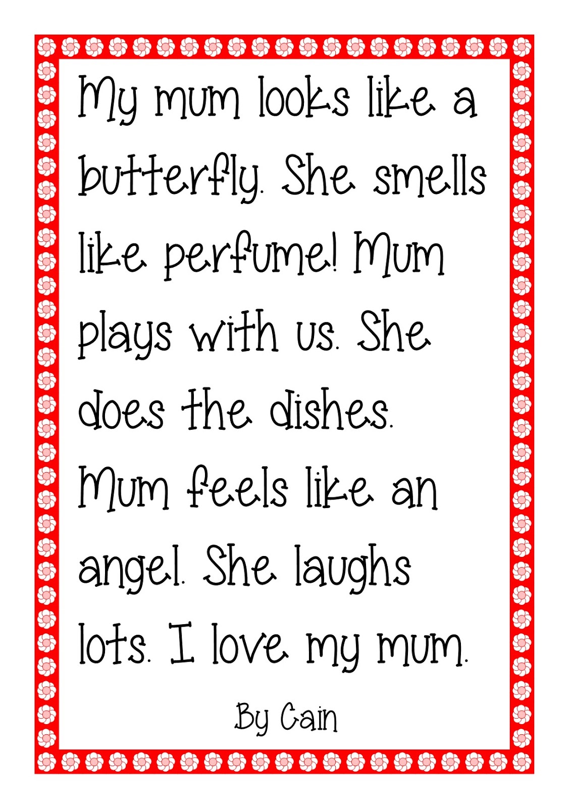 Happy Mother's Day to all the mums for last weekend! We wrote some lovely stories to describe our mums in Room 4. Here are some of them ... the rest are on display in our classroom!